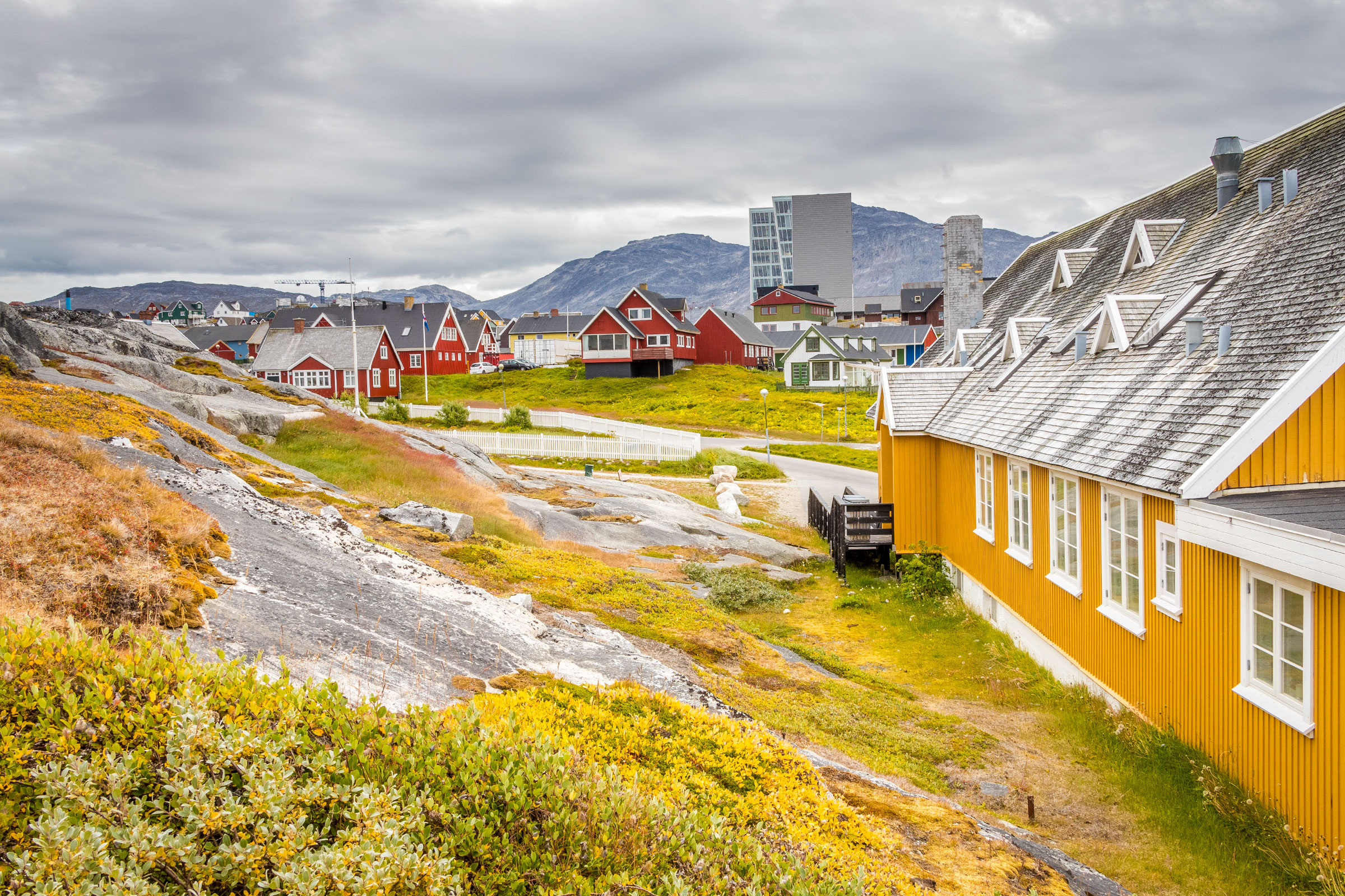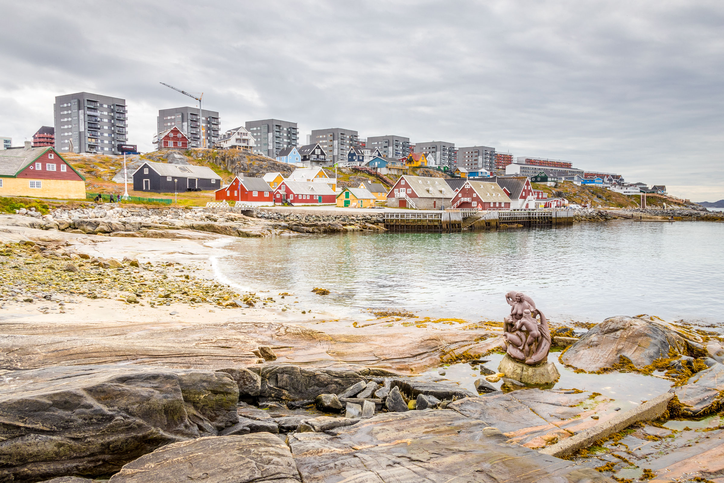 On the shore, in front of the panorama of Sermitsiaq, there are houses in bright colors. The National Museum of Greenland exhibits mummies and sealskin boats, and the Nuuk Art Museum has local works of art.